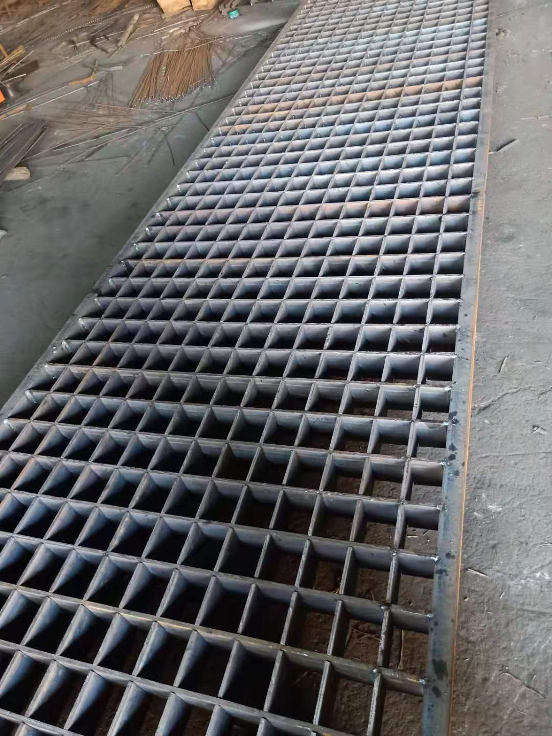插接钢格板用于水沟盖板、楼梯踏步板、池盖板。插接钢格板:在将承载的扁钢切槽后,横杆扁钢压锁成型