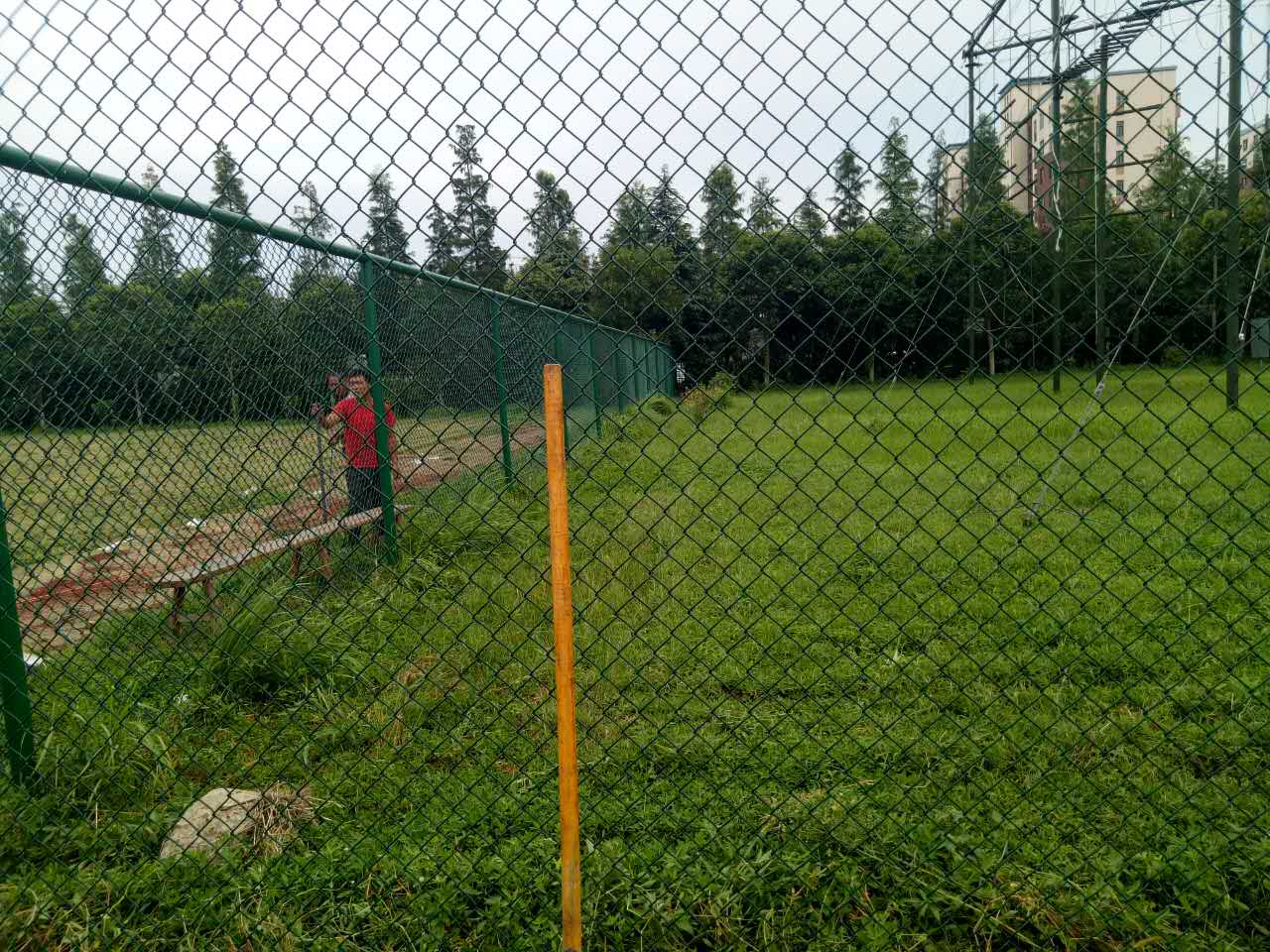 球场围网现场施工安装,产品特点是灵活性强,可根据现场要求随时调整造型和尺寸