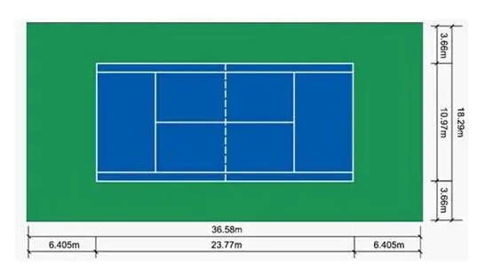 双打地面标准尺寸:长23.77米,宽10.98米