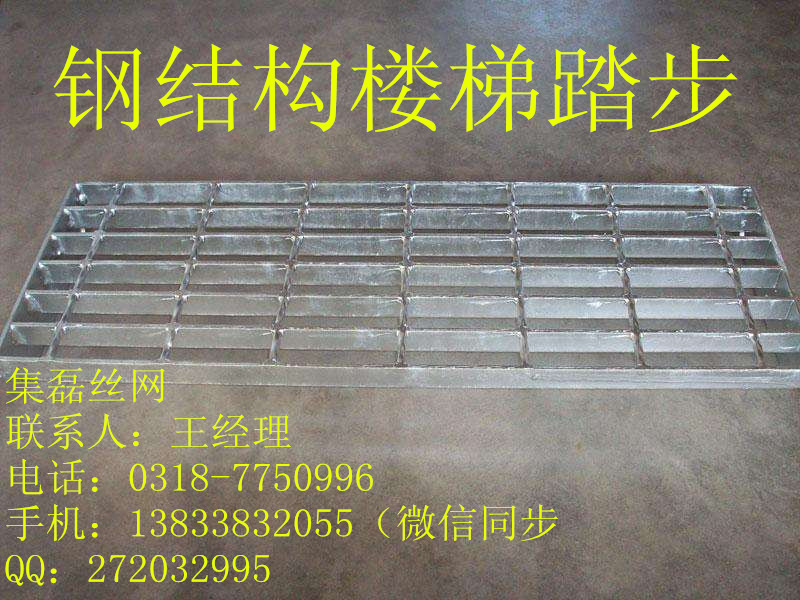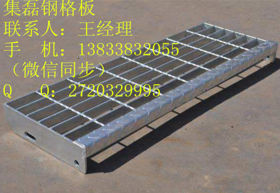 踏步板是由钢格板加工而成的(钢格板是用扁钢按照一定的间距和横杆进行交叉排列,并且焊接成中间带有方形格子的一种钢铁制品)。该产品表面一般用热镀锌、电镀锌处理