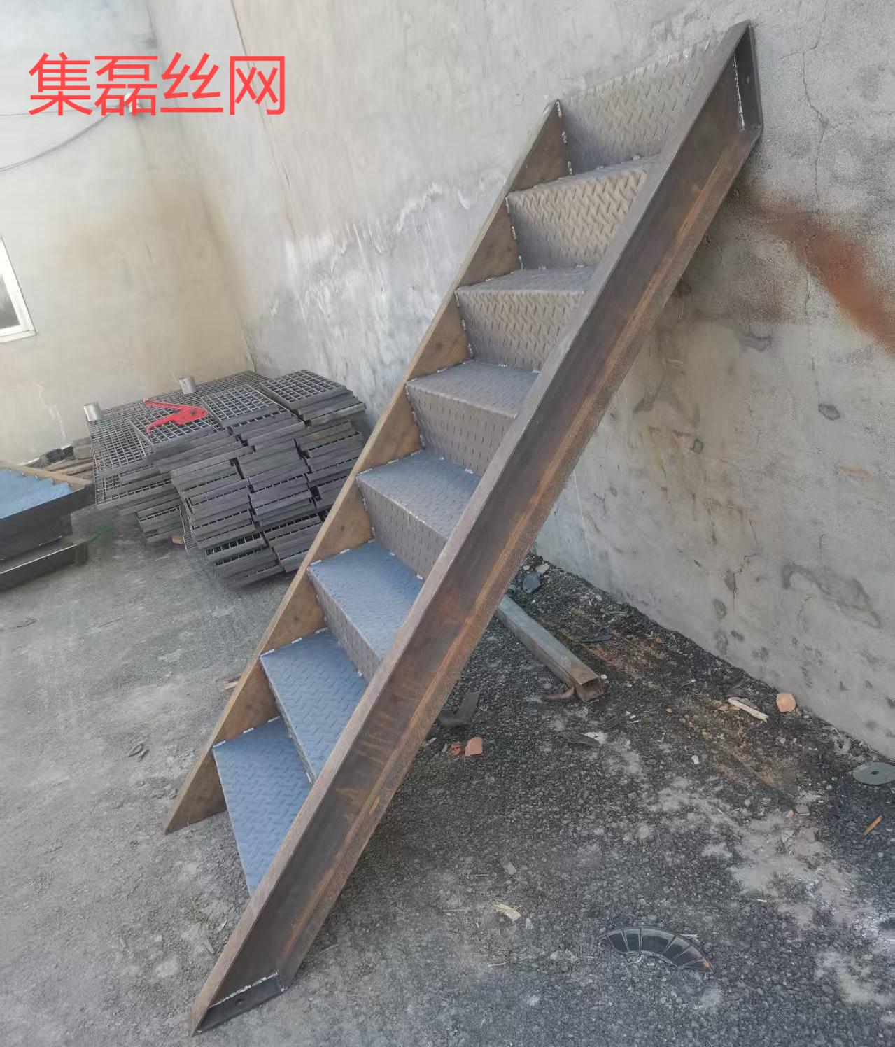 热镀锌钢结构楼梯采用140槽钢做侧梁,花纹板折弯做踏板,焊接成型后整体热镀锌处理,防腐防锈,使用寿命长达20年。