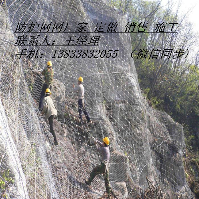 边坡防护网主动防护主动防护系统是以钢丝绳网为主的各类柔性网覆盖包裹在所需防护斜坡或岩石上,以限制坡面岩石土体的风化剥落或破坏以及危岩崩塌(加固作用),或将落石控制于一定范围内运动(围护作用)。前两者通过钢丝绳锚杆和/或支撑绳固定方式,后者通过钢筋(可施加预应力)和/或钢丝绳锚杆(有边沿支撑绳时采用)、专用锚垫板以及必要时的边沿支撑绳等固定方式 。